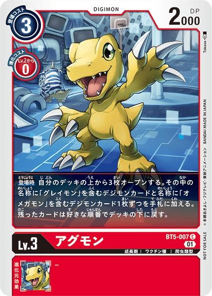 【登場時】自分のデッキの上から3枚オープンする。その中の名称に「グレイモン」を含むデジモンカードと名称に「オメガモン」を含むデジモンカード1枚ずつを手札に加える。残ったカードは好きな順番でデッキの下に戻す。