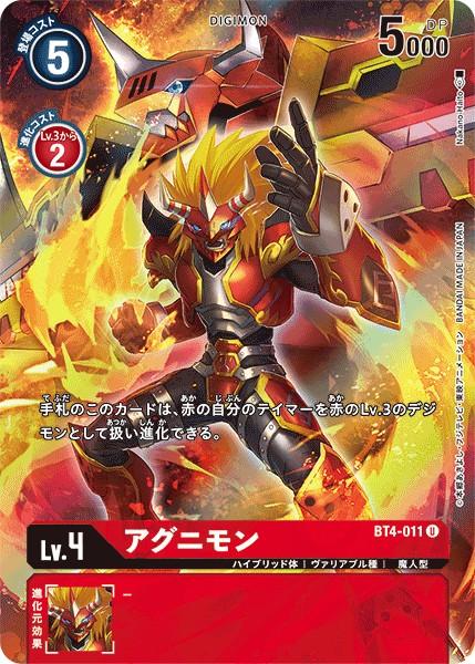 手札のこのカードは、赤の自分のテイマーを赤のLv.3のデジモンとして扱い進化できる。