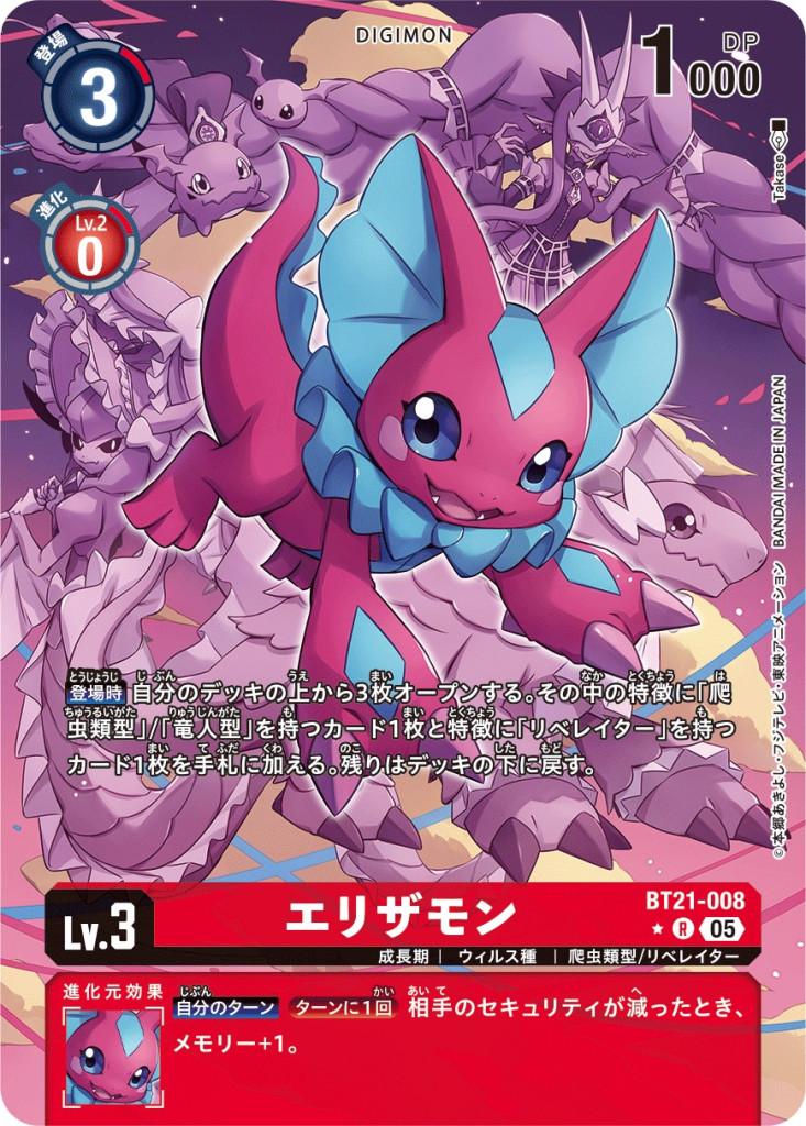 【登場時】自分のデッキの上から3枚オープンする。その中の特徴に「爬虫類型」/「竜人型」を持つカード1枚と特徴に「リベレイター」を持つカード1枚を手札に加える。残りはデッキの下に戻す。