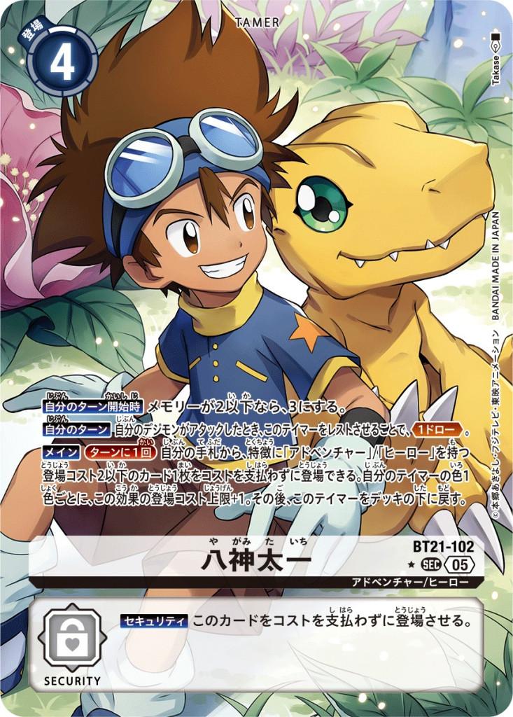 【自分のターン開始時】メモリーが2以下なら、3にする。【自分のターン】自分のデジモンがアタックしたとき、このテイマーをレストさせることで、≪1ドロー≫。【メイン】[ターンに1回]自分の手札から、特徴に「アドベンチャー」/「ヒーロー」を持つ登場コスト2以下のカード1枚をコストを支払わずに登場できる。自分のテイマーの色1色ごとに、この効果の登場コスト上限+1。その後、このテイマーをデッキの下に戻す。