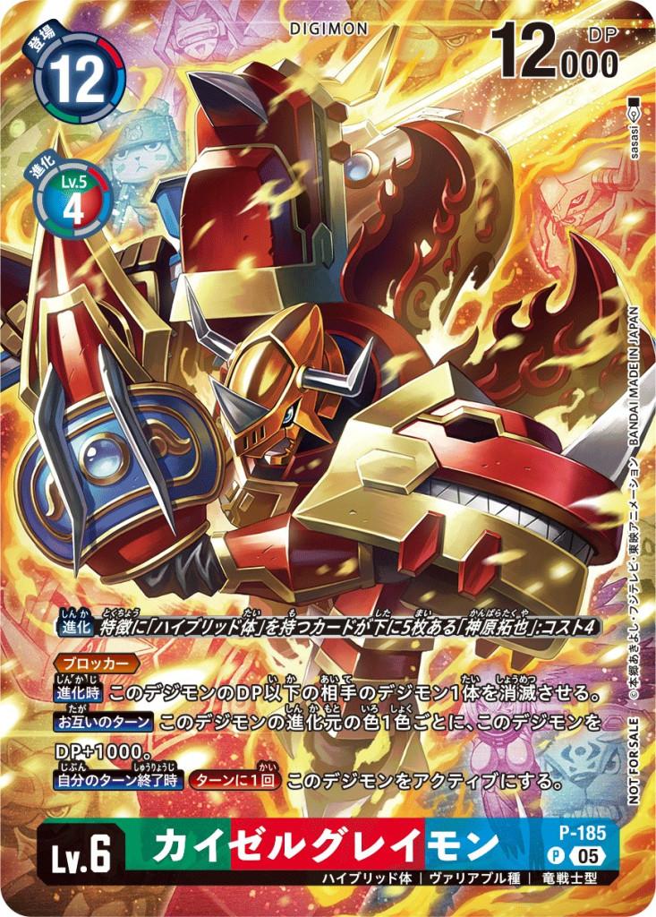≪ブロッカー≫【進化時】このデジモンのDP以下の相手のデジモン1体を消滅させる。【お互いのターン】このデジモンの進化元の色1色ごとに、このデジモンをDP+1000。【自分のターン終了時】[ターンに1回]このデジモンをアクティブにする。