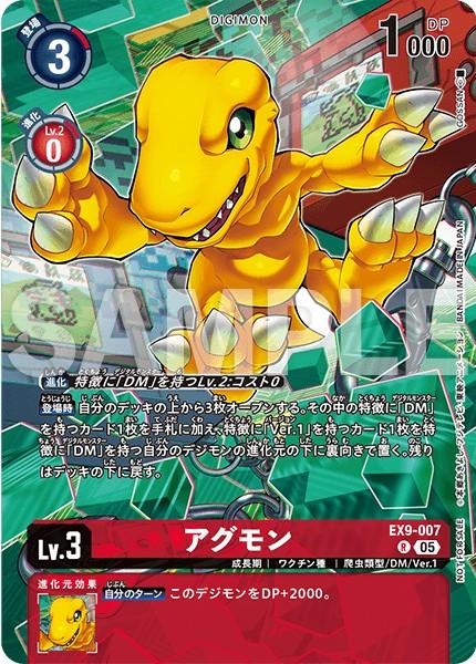【登場時】自分のデッキの上から3枚オープンする。その中の特徴に「DM」を持つカード1枚を手札に加え、特徴に「Ver.1」を持つカード1枚を特徴に「DM」を持つ自分のデジモンの進化元の下に裏向きで置く。残りはデッキの下に戻す。