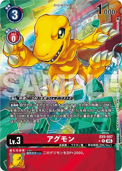 【登場時】自分のデッキの上から3枚オープンする。その中の特徴に「DM」を持つカード1枚を手札に加え、特徴に「Ver.1」を持つカード1枚を特徴に「DM」を持つ自分のデジモンの進化元の下に裏向きで置く。残りはデッキの下に戻す。