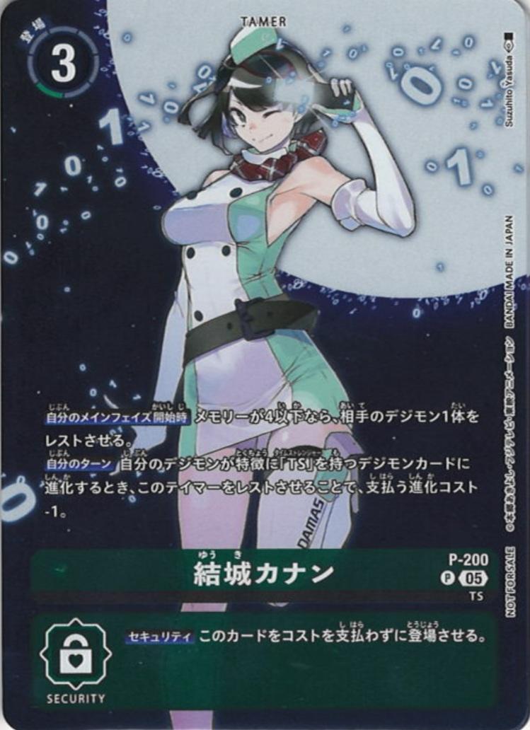 【自分のメインフェイズ開始時】メモリーが4以下なら、相手のデジモン1体をレストさせる。【自分のターン】自分のデジモンが特徴に「TS」を持つデジモンカードに進化するとき、このテイマーをレストさせることで、支払う進化コスト-1。