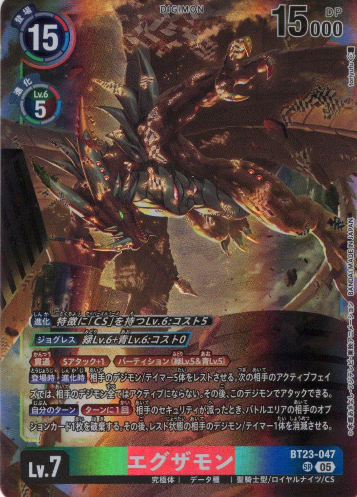 ≪貫通≫≪Sアタック+1≫≪パーティション《緑Lv.5&青Lv.5》≫【登場時】【進化時】相手のデジモン/テイマー5体をレストさせる。次の相手のアクティブフェイズでは、相手のデジモン全てはアクティブにならない。その後、このデジモンでアタックできる。【自分のターン】[ターンに1回]相手のセキュリティが減ったとき、バトルエリアの相手のオプションカード1枚を破棄する。その後、レスト状態の相手のデジモン/テイマー1体を消滅させる。