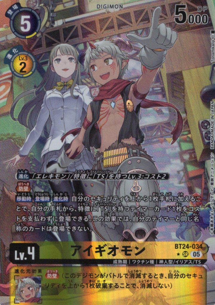 ≪防壁≫【移動時】【登場時】【進化時】自分のセキュリティを上から1枚手札に加えることで、自分の手札から、特徴に「TS」を持つテイマーカード1枚をコストを支払わずに登場できる。この効果では、自分のテイマーと同じ名称のカードは登場できない。
