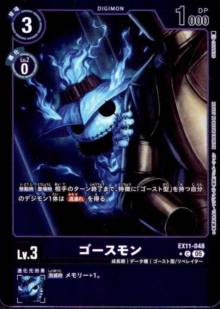 【移動時】【登場時】相手のターン終了まで、特徴に「ゴースト型」を持つ自分のデジモン1体は≪道連れ≫を得る。