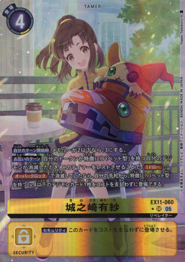 【自分のターン開始時】メモリーが2以下なら、3にする。【お互いのターン】自分のトークンか特徴に「パペット型」を持つ自分のデジモンが消滅したとき、このテイマーをレストさせることで、≪1ドロー≫。≪オーバークロック≫で消滅していたなら、自分の手札から、特徴に「パペット型」を持つLv.4以下のデジモンカード1枚をコストを支払わずに登場できる。
