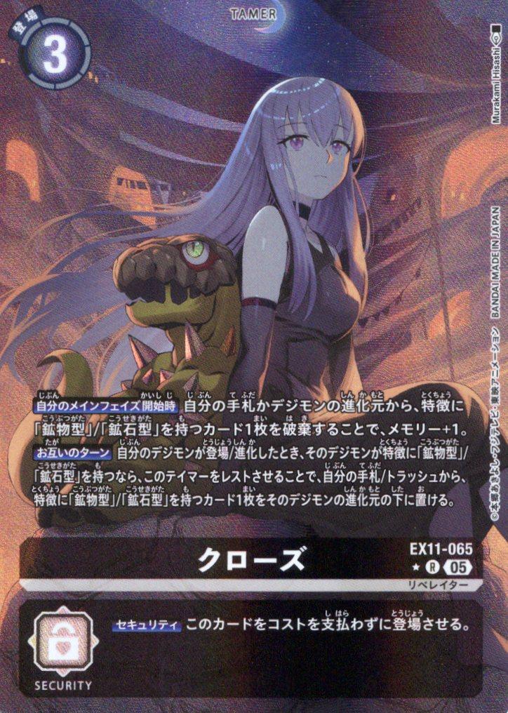 【自分のメインフェイズ開始時】自分の手札かデジモンの進化元から、特徴に「鉱物型」/「鉱石型」を持つカード1枚を破棄することで、メモリー+1。【お互いのターン】自分のデジモンが登場/進化したとき、そのデジモンが特徴に「鉱物型」/「鉱石型」を持つなら、このテイマーをレストさせることで、自分の手札/トラッシュから、特徴に「鉱物型」/「鉱石型」を持つカード1枚をそのデジモンの進化元の下に置ける。