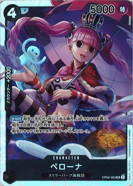 テキスト:【登場時】相手の手札が5枚以上ある場合、以下から1つを選ぶ。・相手は自身の手札1枚を捨てる。・相手のキャラ1枚までを、このターン中、コスト-3。