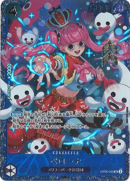 テキスト:【登場時】相手の手札が5枚以上ある場合、以下から1つを選ぶ。・相手は自身の手札1枚を捨てる。・相手のキャラ1枚までを、このターン中、コスト-3。