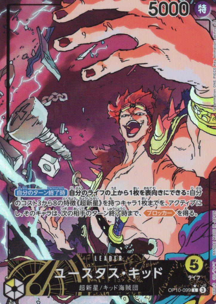 テキスト:【自分のターン終了時】自分のライフの上から1枚を表向きにできる:自分のコスト3から8の特徴《超新星》を持つキャラ1枚までを、アクティブにし、そのキャラは、次の相手のターン終了時まで、【ブロッカー】を得る。
