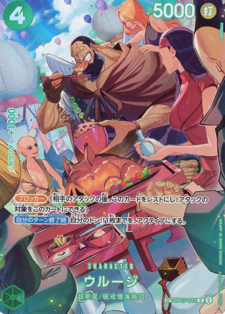 テキスト:【ブロッカー】(相手のアタックの後、このカードをレストにし、アタックの対象をこのカードにできる)【自分のターン終了時】自分のドン!!1枚までを、アクティブにする。