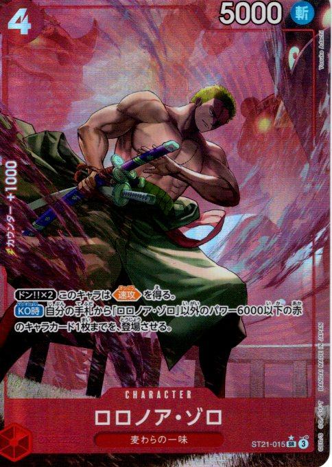 テキスト:【ドン‼×2】このキャラは【速攻】を得る。【KO時】自分の手札から「ロロノア・ゾロ」以外のパワー6000以下の赤のキャラカード1枚までを、登場させる。