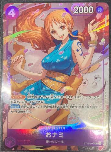 テキスト:【ブロッカー】(相手のアタックの後、このカードをレストにし、アタックの対象をこのカードにできる)【登場時】自分の場のドン!!が8枚以上ある場合、自分の手札1枚を捨て、カード2枚を引く。
