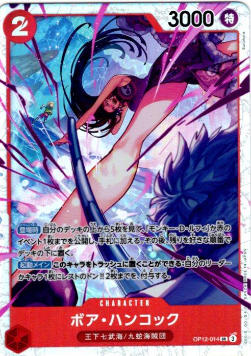 テキスト:【登場時】自分のデッキの上から5枚を見て、「モンキー・D・ルフィ」か赤のイベント1枚までを公開し、手札に加える。その後、残りを好きな順番でデッキの下に置く。【起動メイン】このキャラをトラッシュに置くことができる:自分のリーダーかキャラ1枚にレストのドン‼2枚までを、付与する。