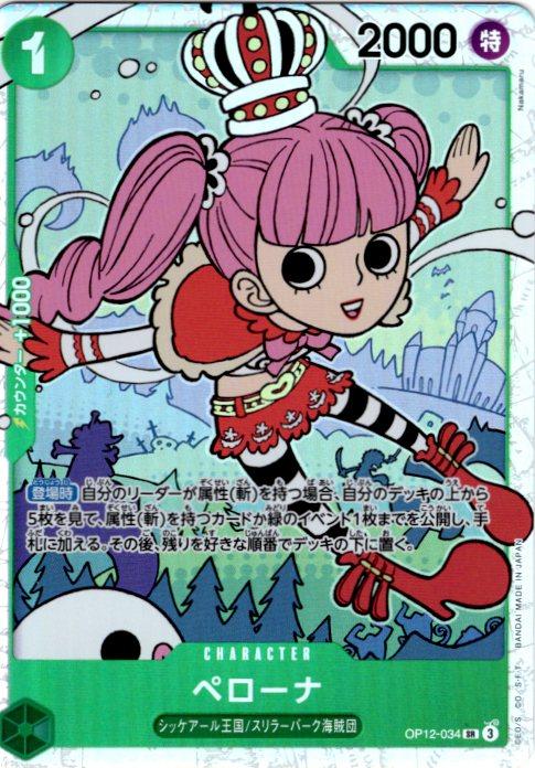 テキスト:【登場時】自分のリーダーが属性(斬)を持つ場合、自分のデッキの上から5枚を見て、属性(斬)を持つカードか緑のイベント1枚までを公開し、手札に加える。その後、残りを好きな順番でデッキの下に置く。