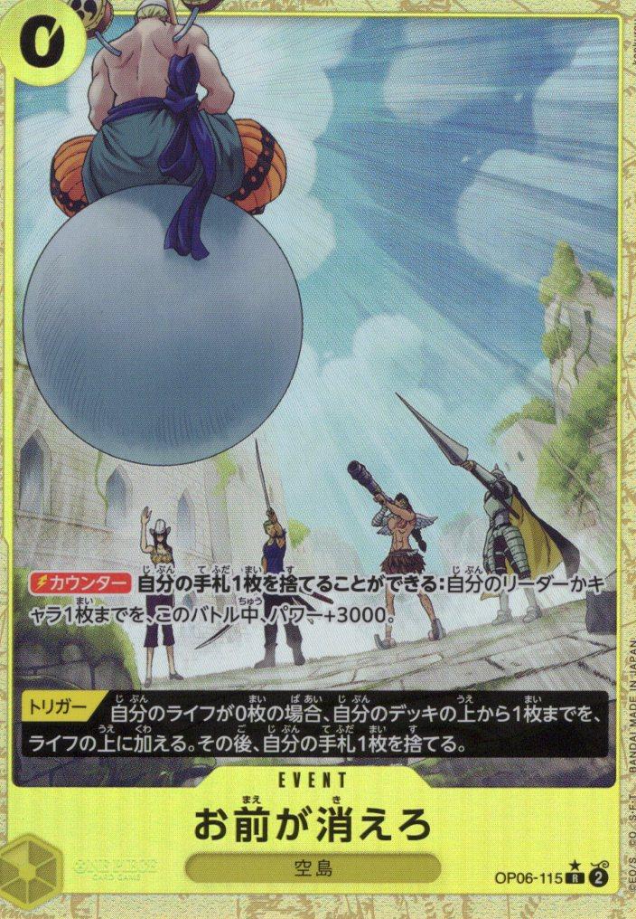 テキスト:【カウンター】自分の手札1枚を捨てることができる:自分のリーダーかキャラ1枚までを、このバトル中、パワー+3000。