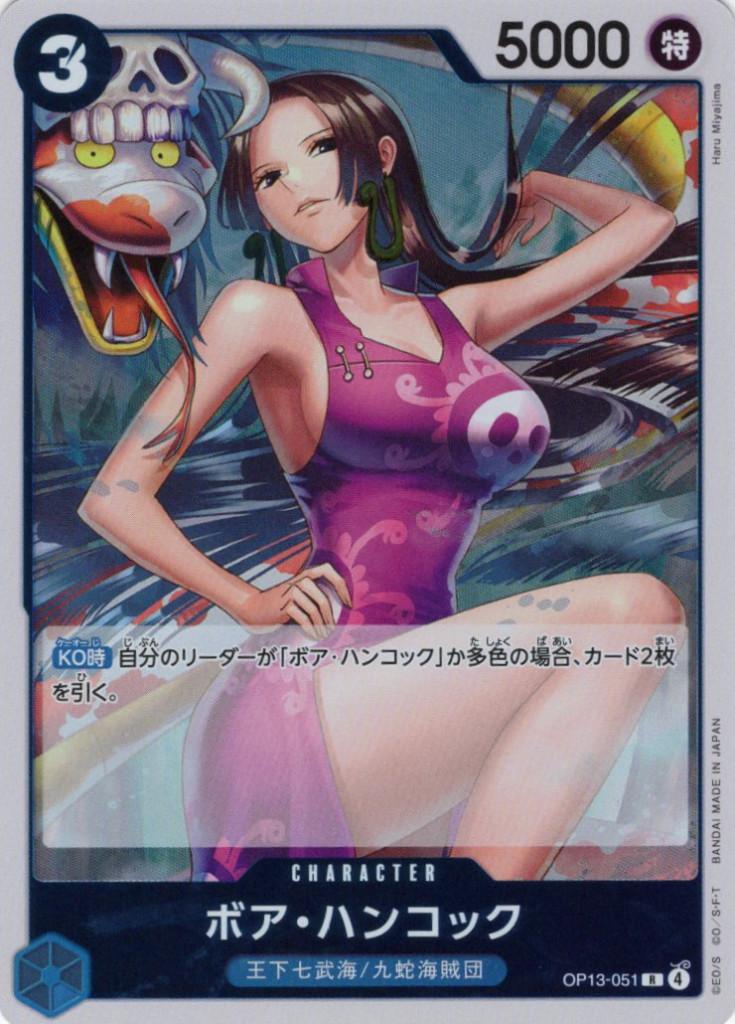 テキスト:【KO時】自分のリーダーが「ボア・ハンコック」か多色の場合、カード2枚を引く。