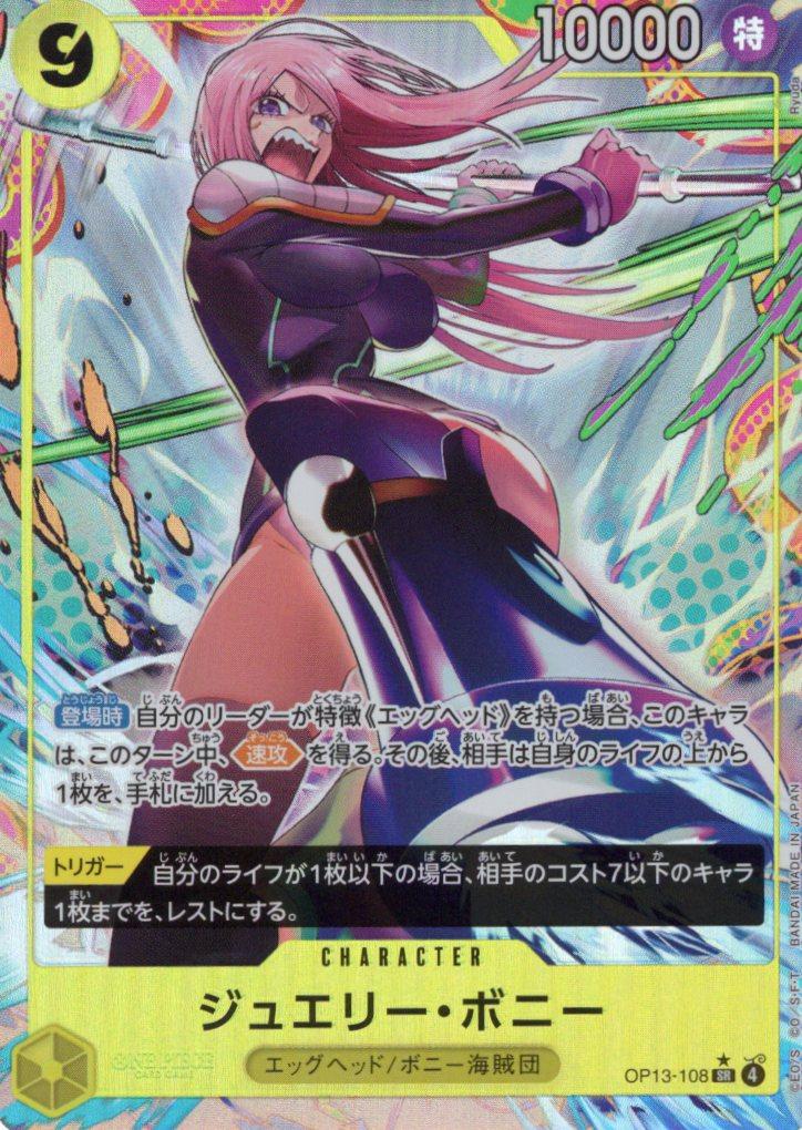 テキスト:【登場時】自分のリーダーが特徴《エッグヘッド》を持つ場合、このキャラは、このターン中、【速攻】を得る。その後、相手は自身のライフの上から1枚を、手札に加える。
