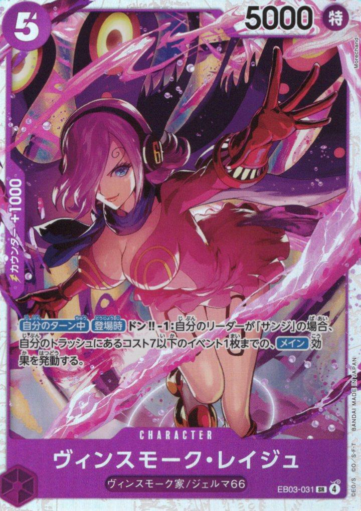 テキスト:【自分のターン中】【登場時】ドン‼-1:自分のリーダーが「サンジ」の場合、自分のトラッシュにあるコスト7以下のイベント1枚までの、【メイン】効果を発動する。