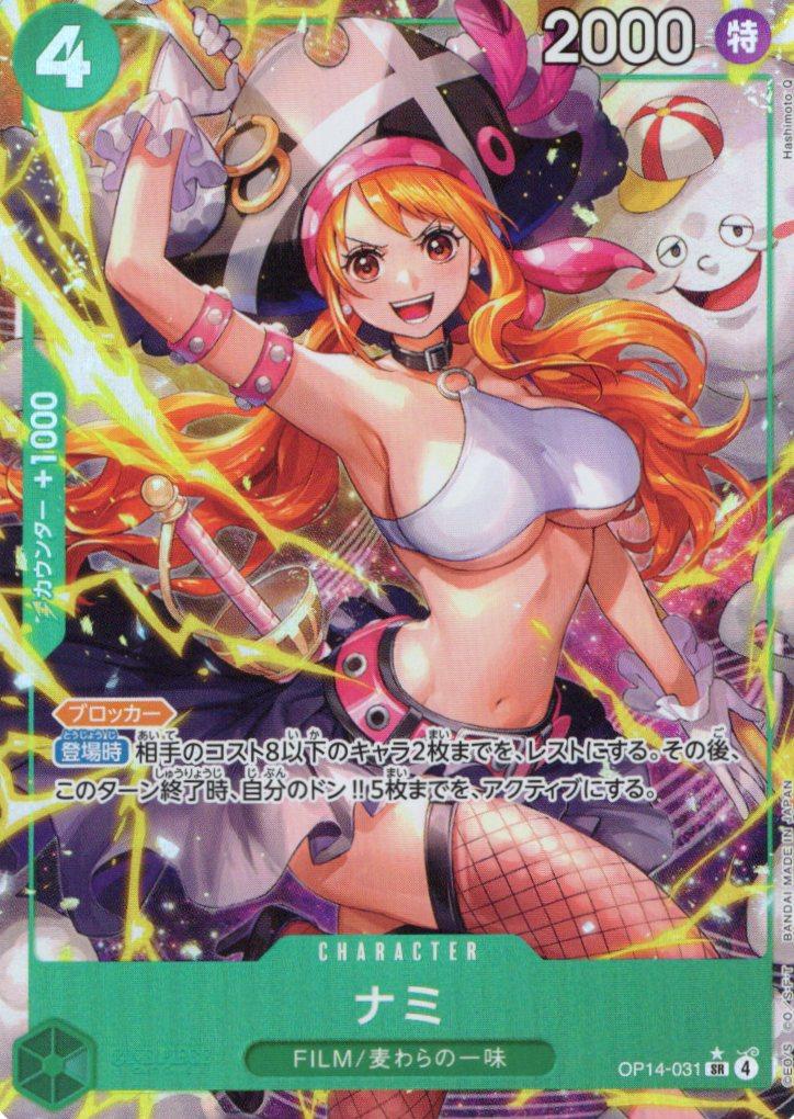 テキスト:【ブロッカー】【登場時】相手のコスト8以下のキャラ2枚までを、レストにする。その後、このターン終了時、自分のドン‼5枚までを、アクティブにする。