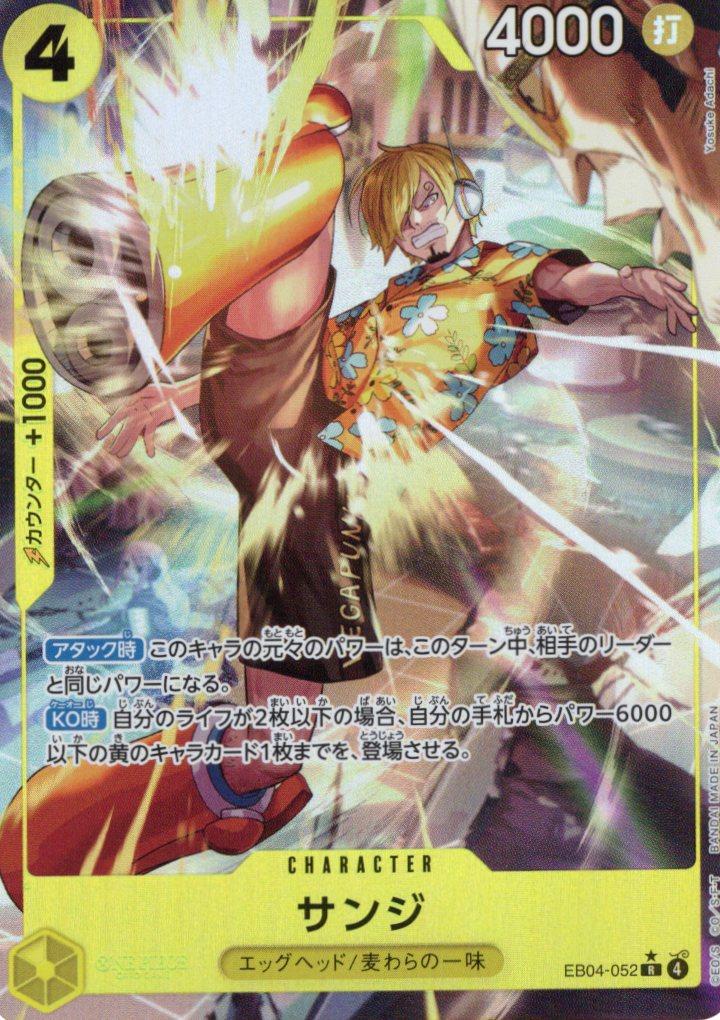 テキスト:【アタック時】このキャラの元々のパワーは、このターン中、相手のリーダーと同じパワーになる。【KO時】自分のライフが2枚以下の場合、自分の手札からパワー6000以下の黄のキャラカード1枚までを、登場させる。