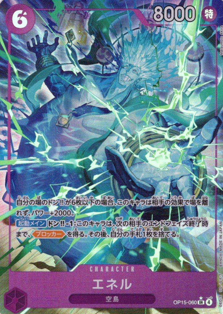 テキスト:自分の場のドン‼が6枚以下の場合、このキャラは相手の効果で場を離れず、パワー+2000。【起動メイン】ドン‼-1:このキャラは、次の相手のエンドフェイズ終了時まで、【ブロッカー】を得る。その後、自分の手札1枚を捨てる。