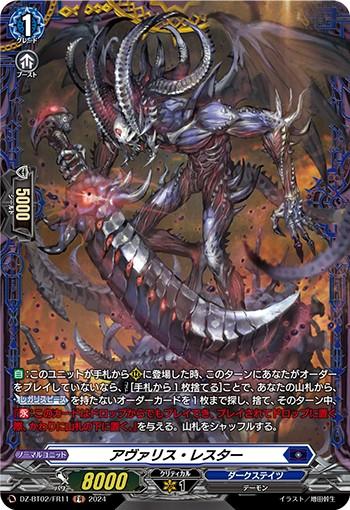 【自】:このユニットが手札から(R)に登場した時、このターンにあなたがオーダーをプレイしていないなら、【コスト】[手札から1枚捨てる]ことで、あなたの山札から、【レガリスピース】を持たないオーダーカードを1枚まで探し、捨て、そのターン中、『【永】:このカードはドロップからでもプレイでき、プレイされてドロップに置く際、かわりに山札の下に置く。』を与える。山札をシャッフルする。