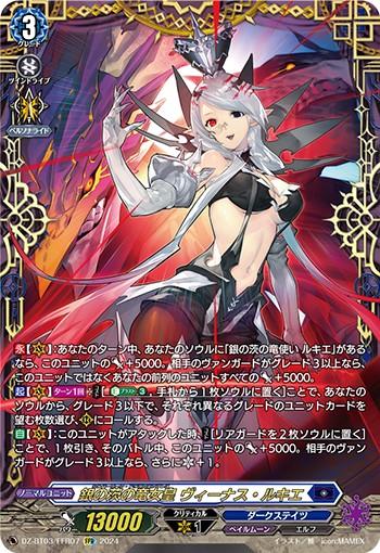 【永】【(V)】:あなたのターン中、あなたのソウルに「銀の茨の竜使い ルキエ」があるなら、このユニットのパワー+5000。相手のヴァンガードがグレード3以上なら、このユニットではなくあなたの前列のユニットすべてのパワー+5000。