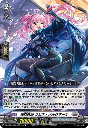 【自】:あなたのターンにこのカードが、(R)に登場した時か、あなたのヴァンガードの能力で手札から捨てられた時、あなたのヴァンガードが「葬空死団」を含むなら、【コスト】[【エネルギーブラスト】(3)]することで、あなたのドロップから作戦カードを1枚選び、手札に加える。