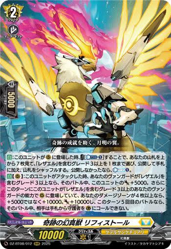 【自】:このユニットが(R)に登場した時、【コスト】[【カウンターブラスト】(1)]することで、あなたの山札を上から7枚見て、「レザエル」を含むグレード3以上を1枚まで選び、公開して手札に加え、山札をシャッフルする。公開しなかったなら、【カウンターチャージ】(1)。