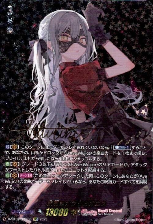 【自】【(V)】【ターン1回】:このユニットがアタックした時、このターンにあなたが〈Ave Mujica〉の楽曲オーダーをプレイしているなら、あなたの呪縛カードすべてを解呪する。