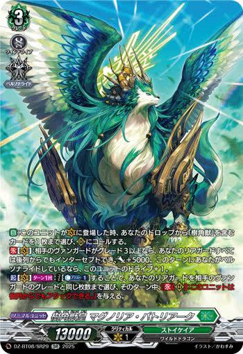 【永】【(V)】:相手のヴァンガードがグレード3以上なら、あなたのリアガードすべては後列からでもインターセプトでき、パワー+5000。このターンにあなたがペルソナライドしているなら、このユニットのドライブ+1。