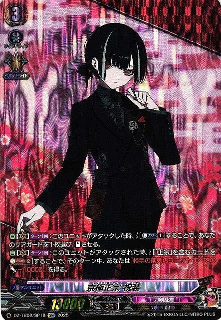 【自】【(V)】【ターン1回】:このユニットがアタックされた時、【コスト】[「正宗」を含むカードを【ソウルブラスト】(2)]することで、そのターン中、あなたは『相手の前列のユニットすべてのパワー-10000。』を得る。