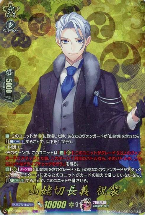 【自】【(R)】【ターン1回】:「山姥切」を含むグレード3以上のあなたのヴァンガードがアタックした時、このターンのバトルフェイズにあなたのユニットがカードの能力で【スタンド】していないなら、【コスト】[【エネルギーブラスト】(3)]することで、このユニットを【スタンド】させる。
