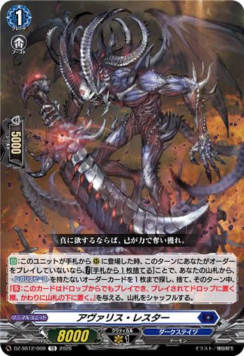 【自】:このユニットが手札から(R)に登場した時、このターンにあなたがオーダーをプレイしていないなら、【コスト】[手札から1枚捨てる]ことで、あなたの山札から、【レガリスピース】を持たないオーダーカードを1枚まで探し、捨て、そのターン中、『【永】:このカードはドロップからでもプレイでき、プレイされてドロップに置く際、かわりに山札の下に置く。』を与える。山札をシャッフルする。