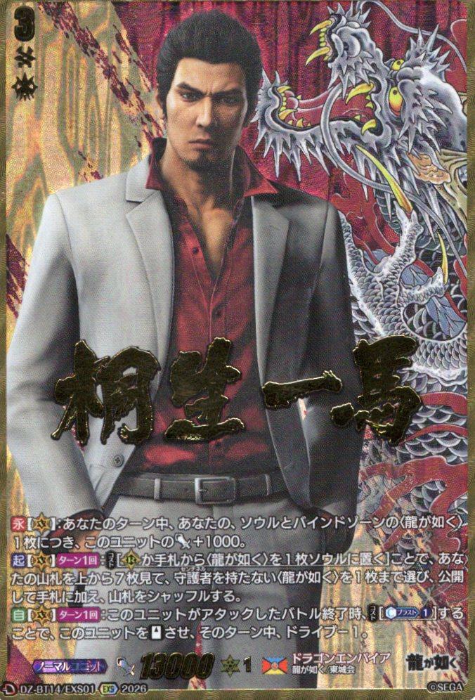 【永】【(V)】:あなたのターン中、あなたの、ソウルとバインドゾーンの〈龍が如く〉1枚につき、このユニットのパワー+1000。